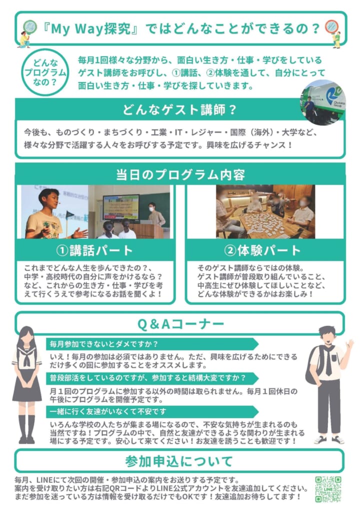 (注)上記の申込ボタンを押すと、「MyWay探究」事務局の公式アカウントが開きます。当アカウントは周南公立大学総合教育センターが運営しています。