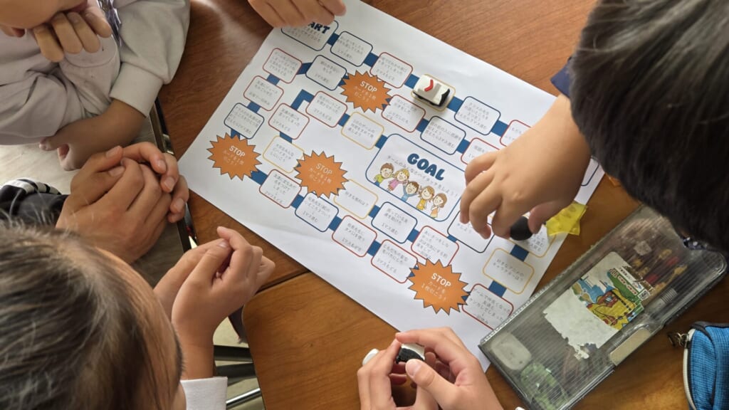 本ゼミでは、令和4年度より東陽小学校と継続的に連携し、学生主体の授業や交流活動を展開しています。今年度は同校より「インターネットと人権に関する学習を子どもたちにも分かりやすく伝えてほしい」との依頼を受け、学生たちは10月から授業づくりに取り組んできました。前期は高学年(5・6年生)、後期は中学年(3・4年生)の児童を対象とし、学生たちは、遊びながら人権について考えることができるオリジナルすごろくを開発しました。