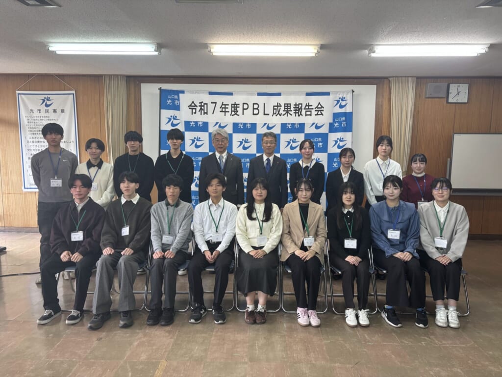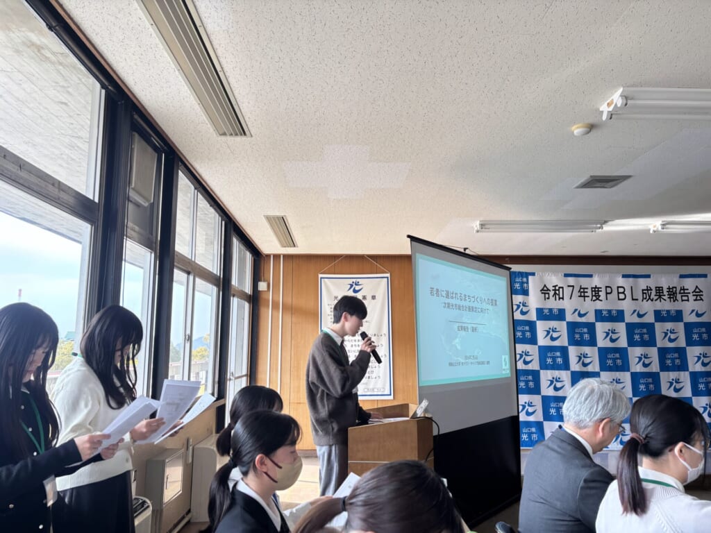 周南公立大学では光市と連携して、現在、光市が策定を進める次期光市総合計画に向けてのプロジェクト型課題解決学習(PBL)を実施しています。この度、2月6日(金曜日)、光市役所にて本年度の成果報告会を開催しました。